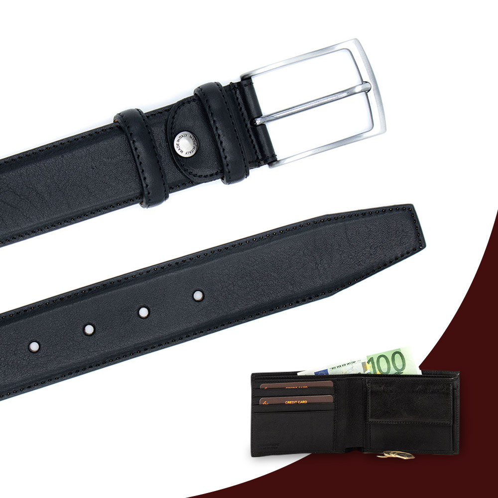 Cintura e portafoglio in pelle regolabile da uomo nero Cinture e portafogli premium per gli uomini Fibbia a cricchetto in lega resistente Very well made.