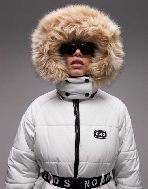 Topshop Sno ski coat with belt and fur trim hood in ecru ASOS Very well made.