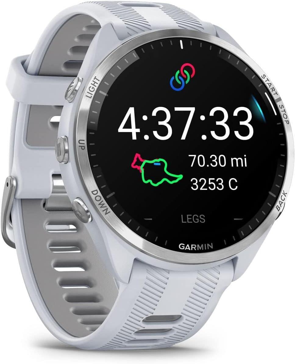 Garmin Forerunner 965 Premium GPS Running and Triathlon Smartwatch Titanium Bezel with Whitestone Case and Whitestone Powder Grey Silicone Band Very well made.