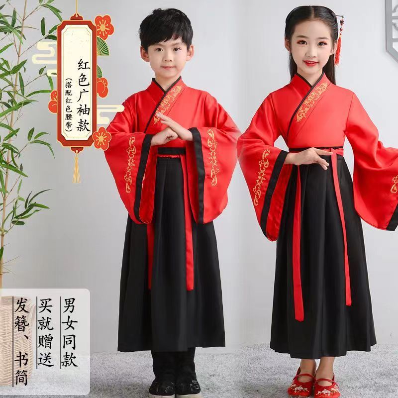 Children hanfu chinese folk dance costumes school boy girls competition stage performance princess kimono dresses Material polyester not Very well made.