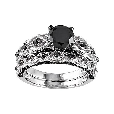 Stella Grace 10k White Gold 1 3 8 Carat T.W. Black Diamond Swirl Engagement Ring Set Very well made.