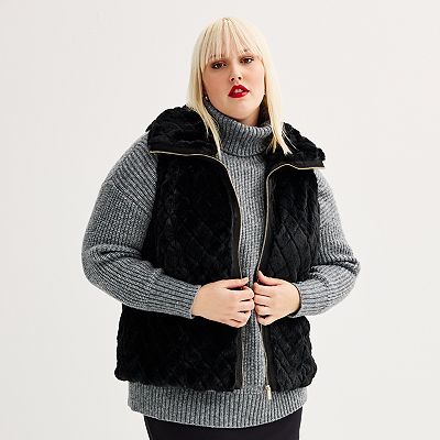 Plus Size Carmen Marc Valvo Faux Fur Quilted Collared Vest Very well made.
