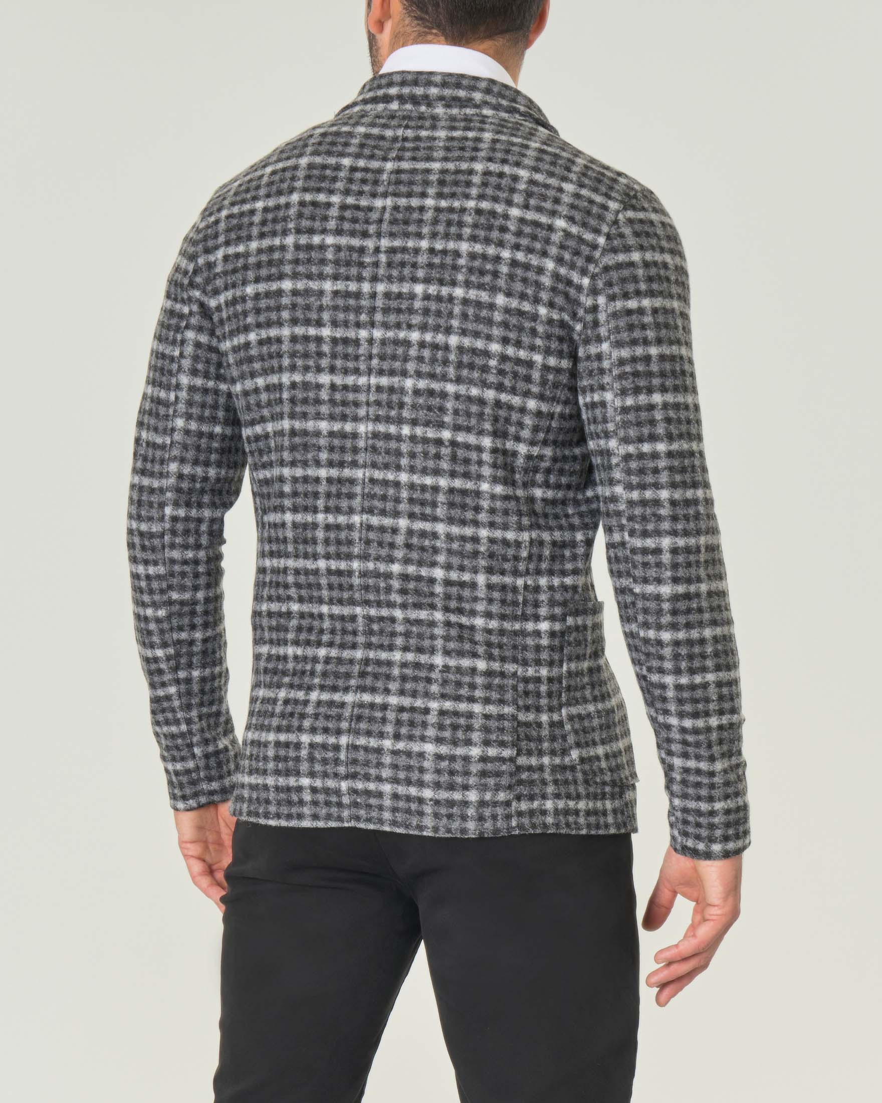 Giacca maglia in tessuto di misto lana a quadretti grigi bianchi e neri Very well made.
