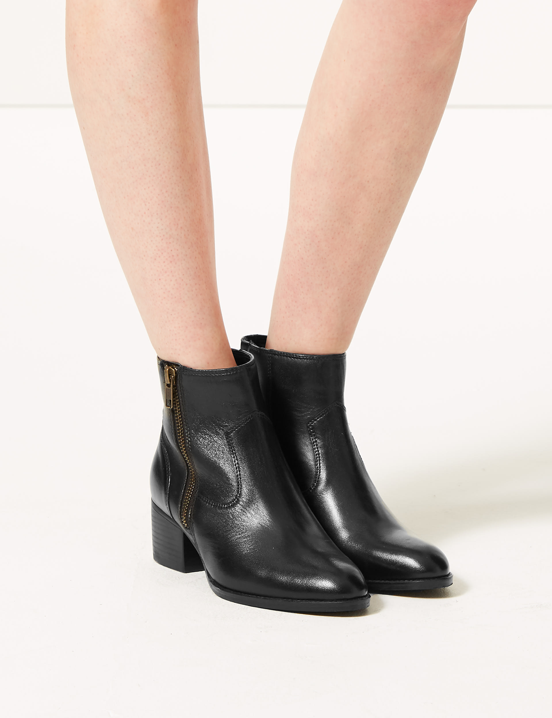 Leather Block Heel Ankle Boots M S Collection M S Very well made.