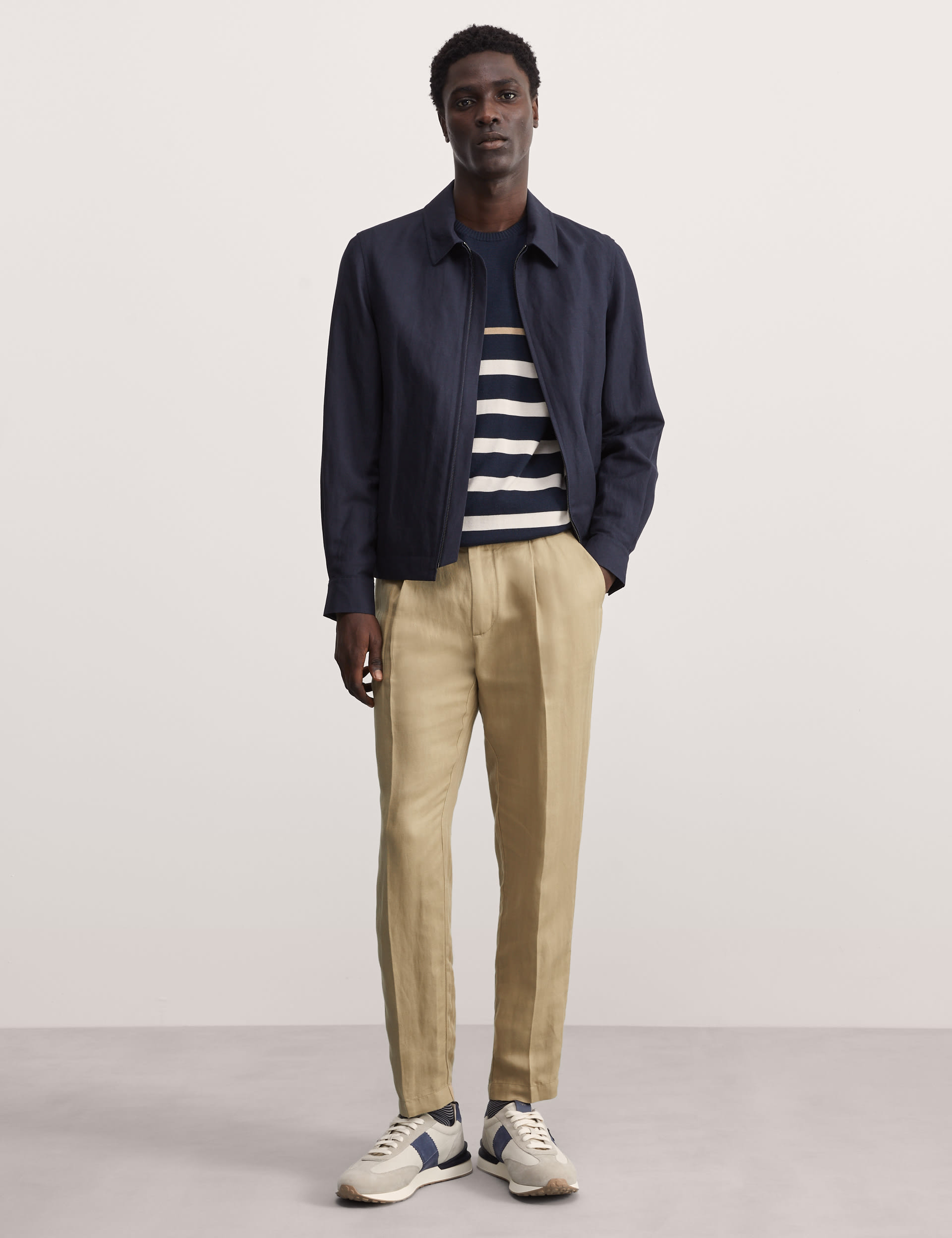 Tapered Fit Linen Blend Single Pleat Trousers JAEGER M S Very well made.
