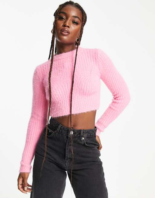 Bershka crew neck cropped fluffy sweater in pink ASOS Very well made.