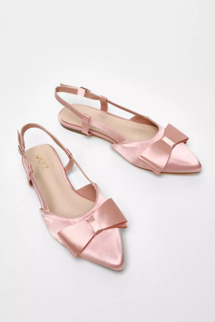 Pink Satin Bow Slingback Flat Pumps QUIZ Clothing Very well made.