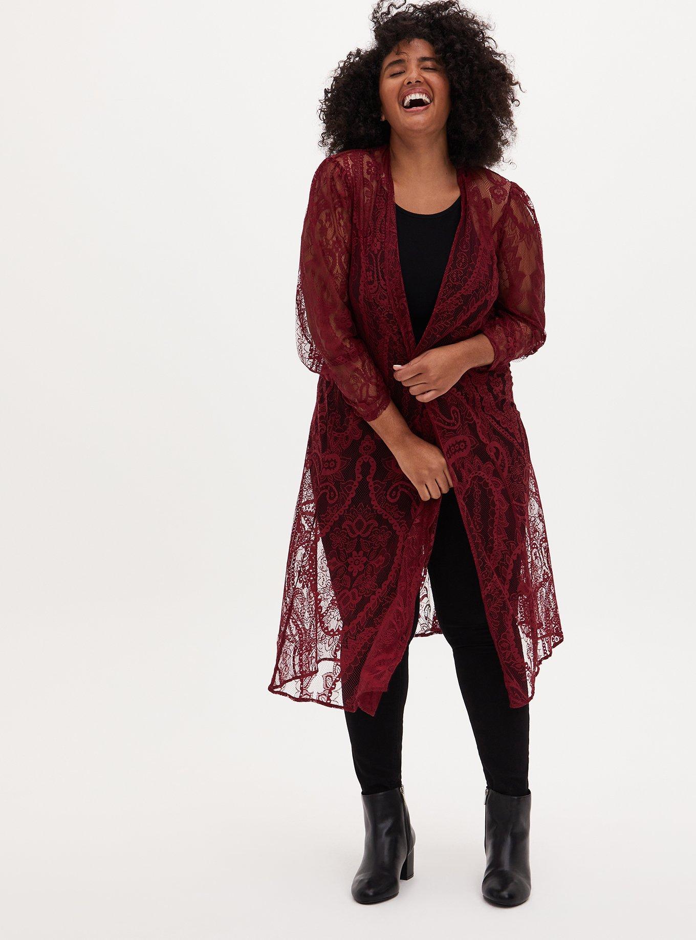 Plus Size Dark Red Lace Long Sleeve Duster Kimono Torrid Very well made.