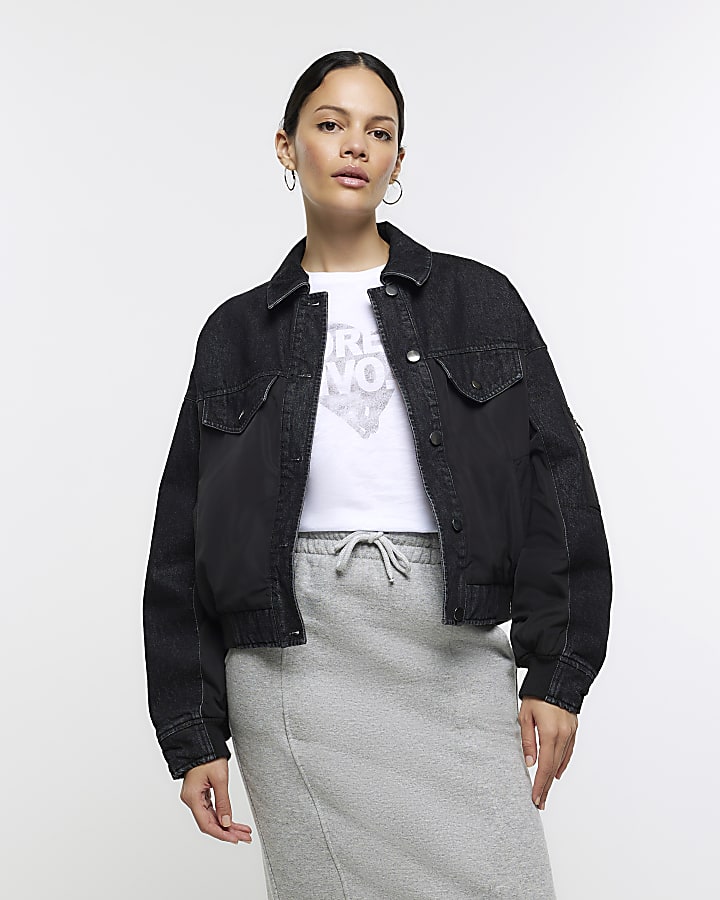 Black denim hybrid bomber jacket River Island Very well made.