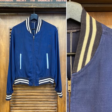 Vintage 1950 s Navy Blue Rayon Rockabilly Bomber Jacket 50 s Bomber Vintage on Hollywood Hollywood Los Angeles CA Very well made.