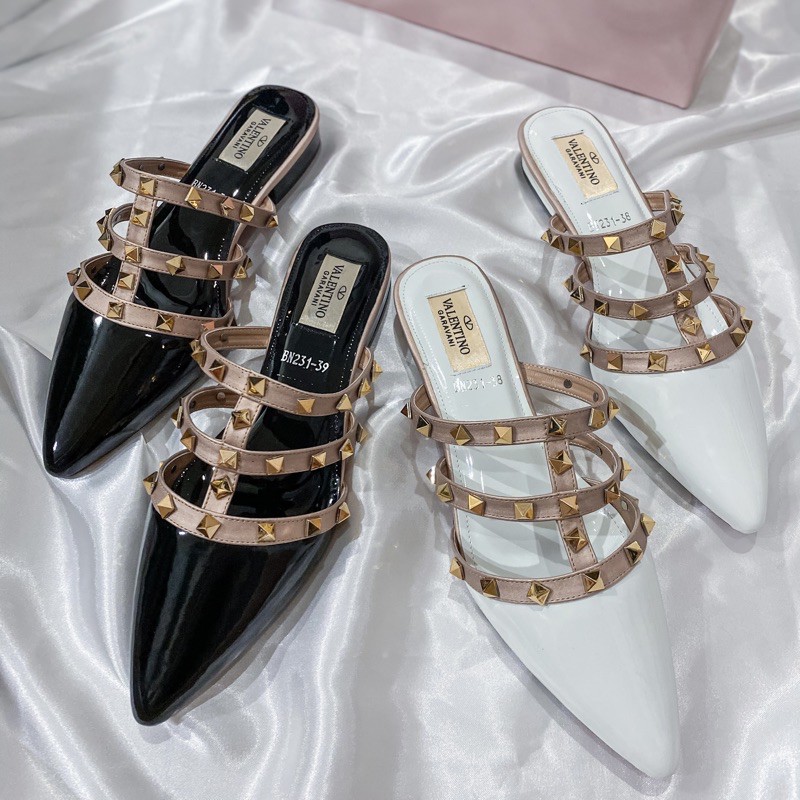 Slipper by Valentino Garavani strappy import high quality fashion shoes casual rockstud sandals 001 Very well made.
