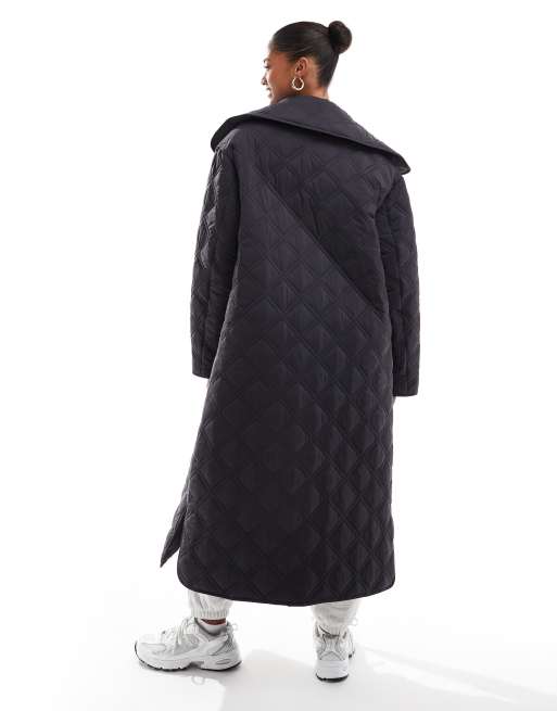 ASOS DESIGN waterfall collar double stitch quilt longline coat in black Very well made.