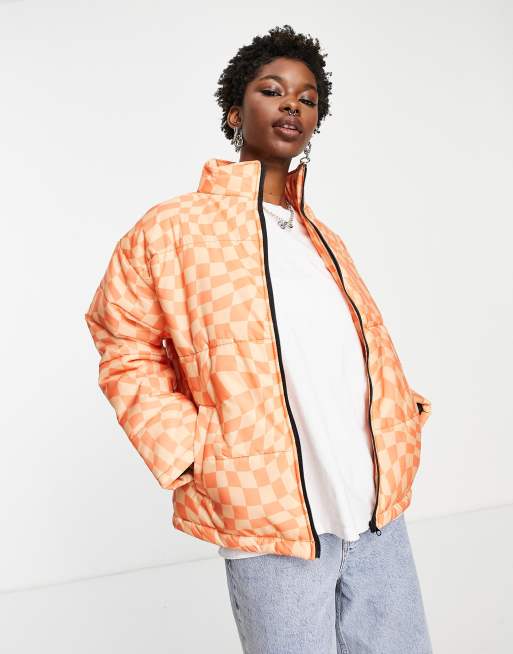 Daisy Street relaxed puffer jacket in orange wavy print Very well made.