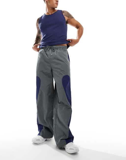 ASOS DESIGN baggy nylon track pants in gray with blue panels Very well made.
