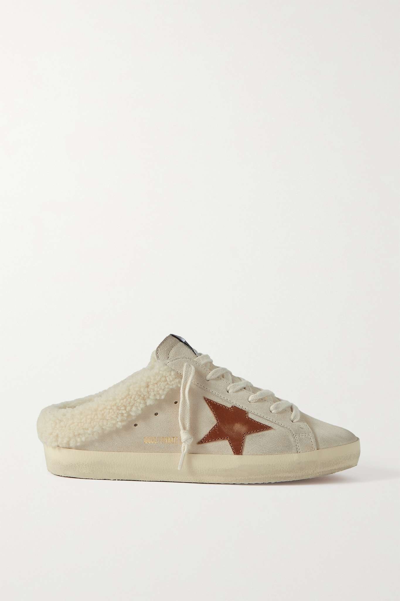 Golden Goose Super Star Sabot shearling lined distressed leather trimmed suede slip on sneakers REVERSIBLE Very well made.