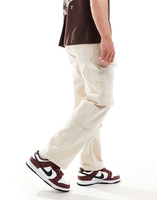 ASOS DESIGN baggy cargo pants in ecru ripstop with carpenter loop Very well made.