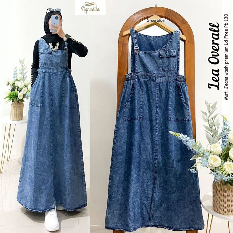 NAWALA Overall Jeans Wanita Rok Terbaru Kekinian Murah Snow Blue Black Jumpsuit Baju Kodok Terusan Overall Dress Wanita Dewasa OOTD Remaja Muslim Muslim Modern Bahan Jeans denim by BERHIJAB Lazada Ind... Very well made.