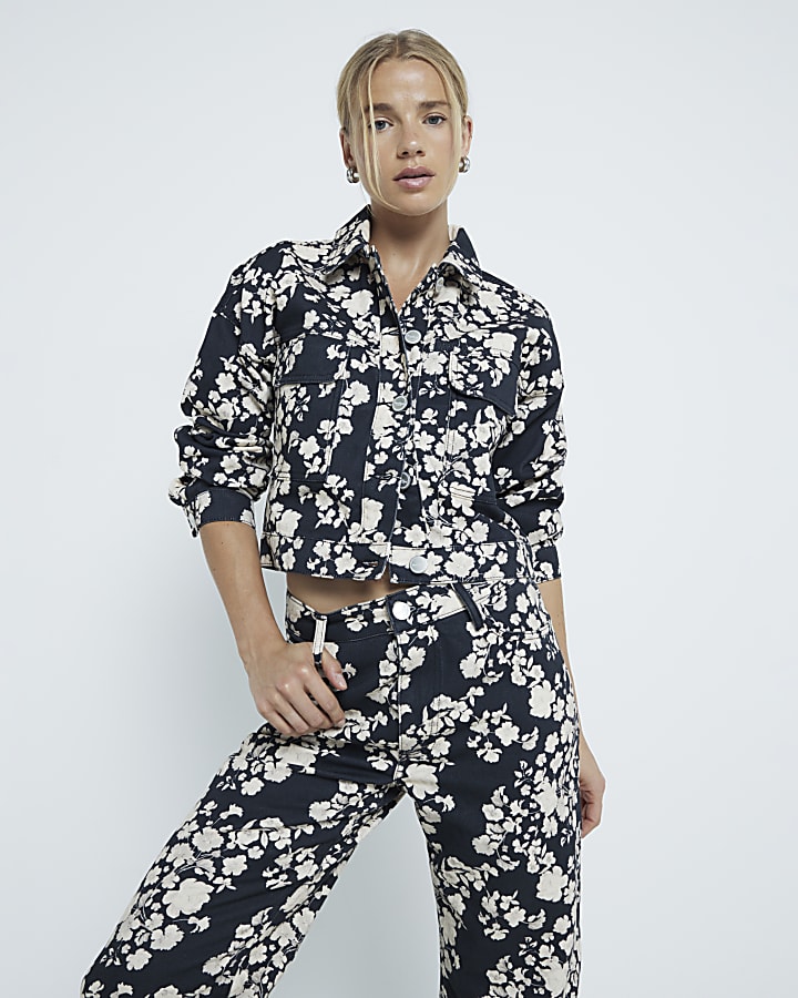 Hfyihgf Womens Button Down Shirts Distressed Flower Printed Denim Jacket Long Sleeve Color Block Patchwork Jean Coat for Spring and Fall Black S Very well made.