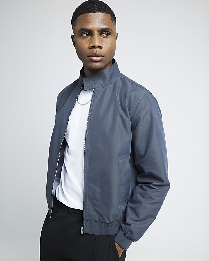 Blue Regular Fit Funnel Harrington Jacket River Island Very well made.