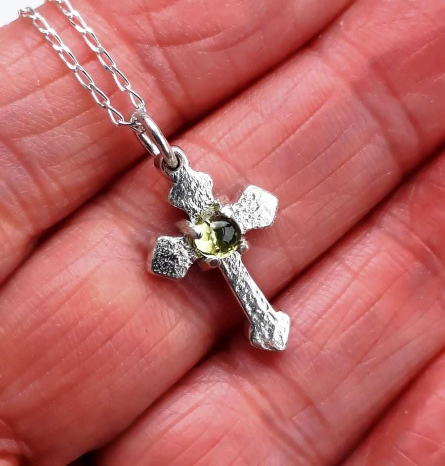 Silver Cross Necklace Natural Peridot Cross Pendant Irosk Irosk Australia Very well made.